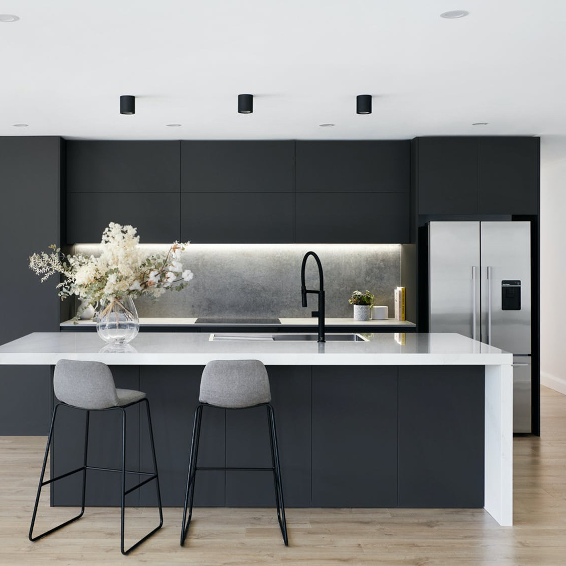 Grifería empotrada negra mate