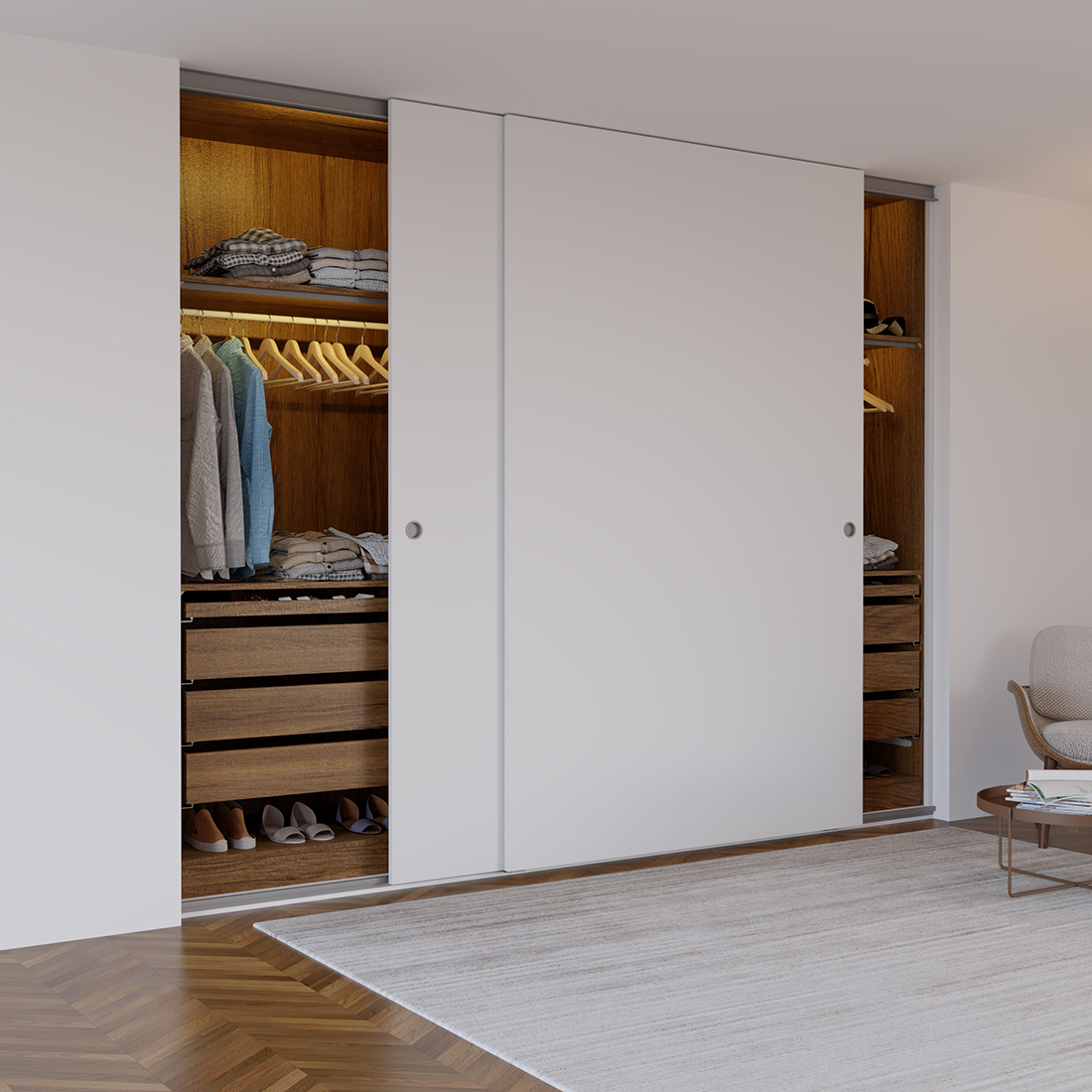 Puertas abatibles o en corredera y acabado en función de la elección de las puertas de paso