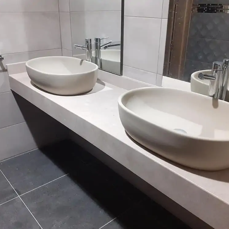 Lavabo sobre encimera de porcelánico