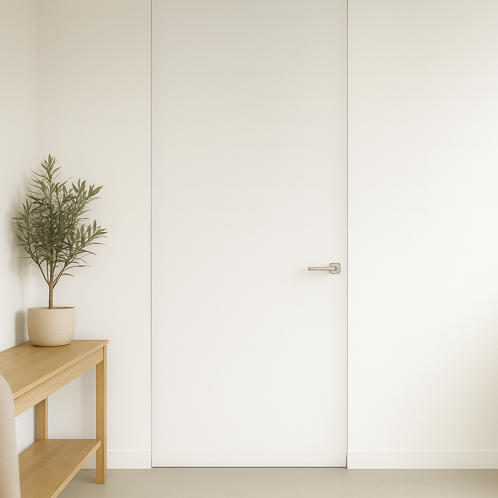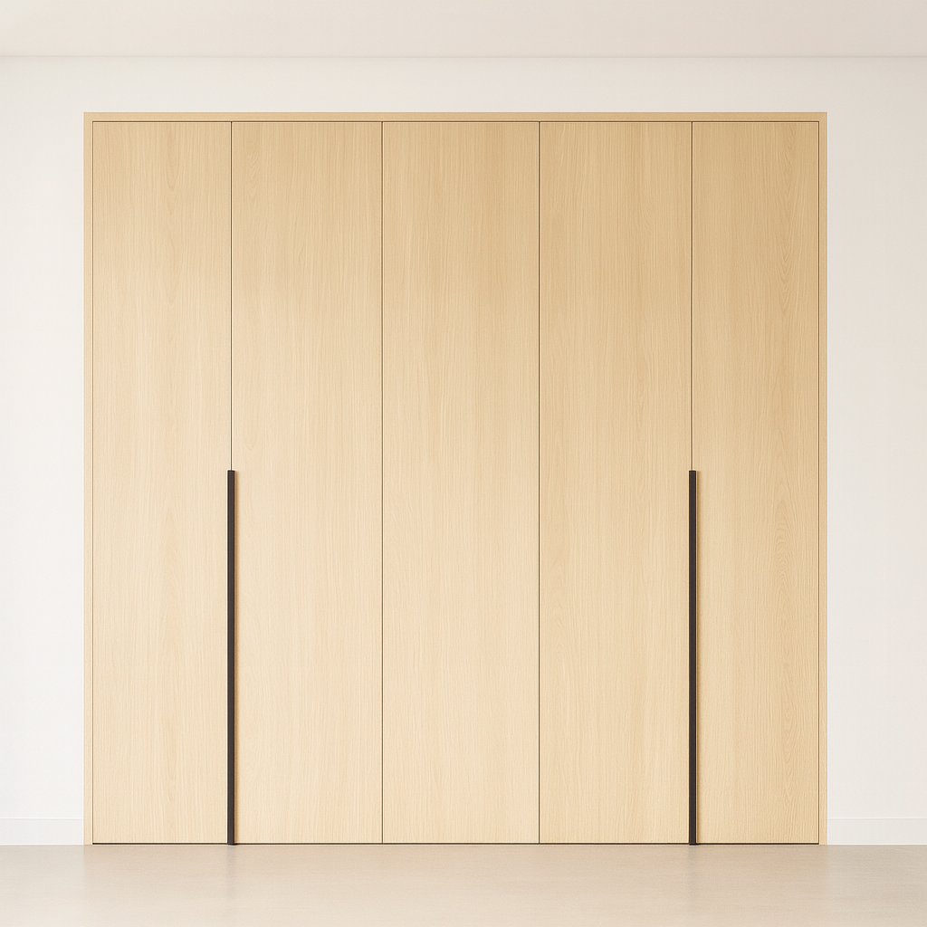Posibilidad de puertas en altura hasta techo. También se pueden seleccionar herrajes/manillas cromadas o negras