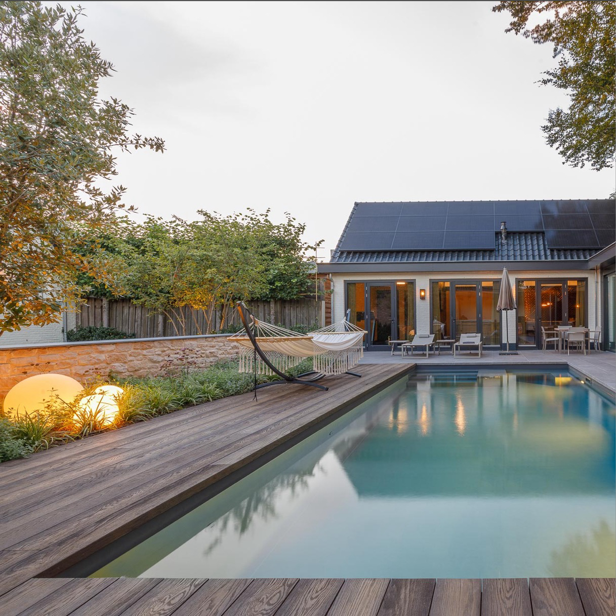 Iluminación exterior LED con sensor crepuscular (opcional/según proyecto)