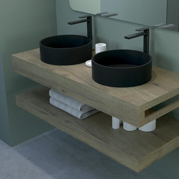 Lavabo sobre encimera de madera